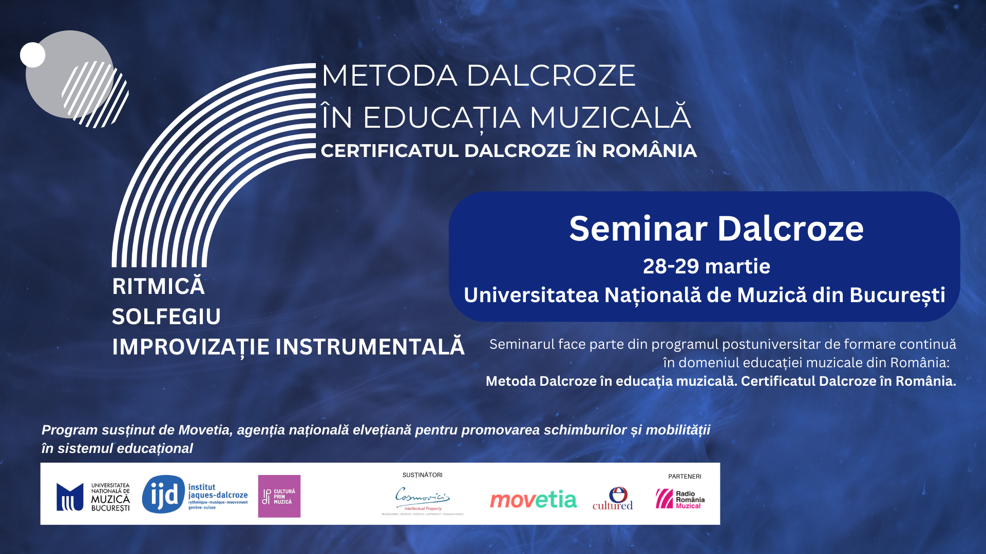 Un nou Seminar Dalcroze se va desfășura în weekendul 28–29 martie 2026, la Universitatea Națională de Muzică din București.